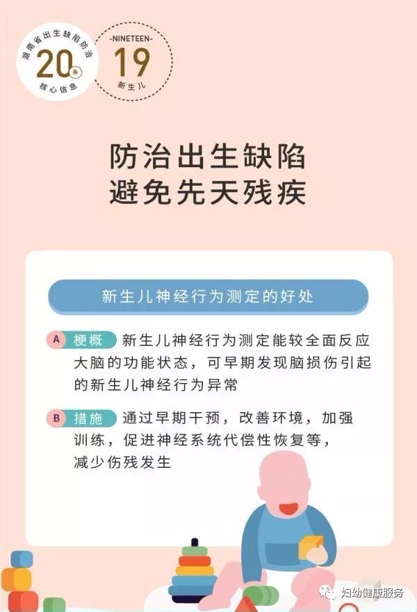 19、新生儿眼病筛查时间:出生一周内,早产儿出生4-6周或者矫正胎龄32周以上,筛查内容包括:外眼检查、对光刺激反应、瞳孔对光反射、瞳孔红光反射和眼底检查等。